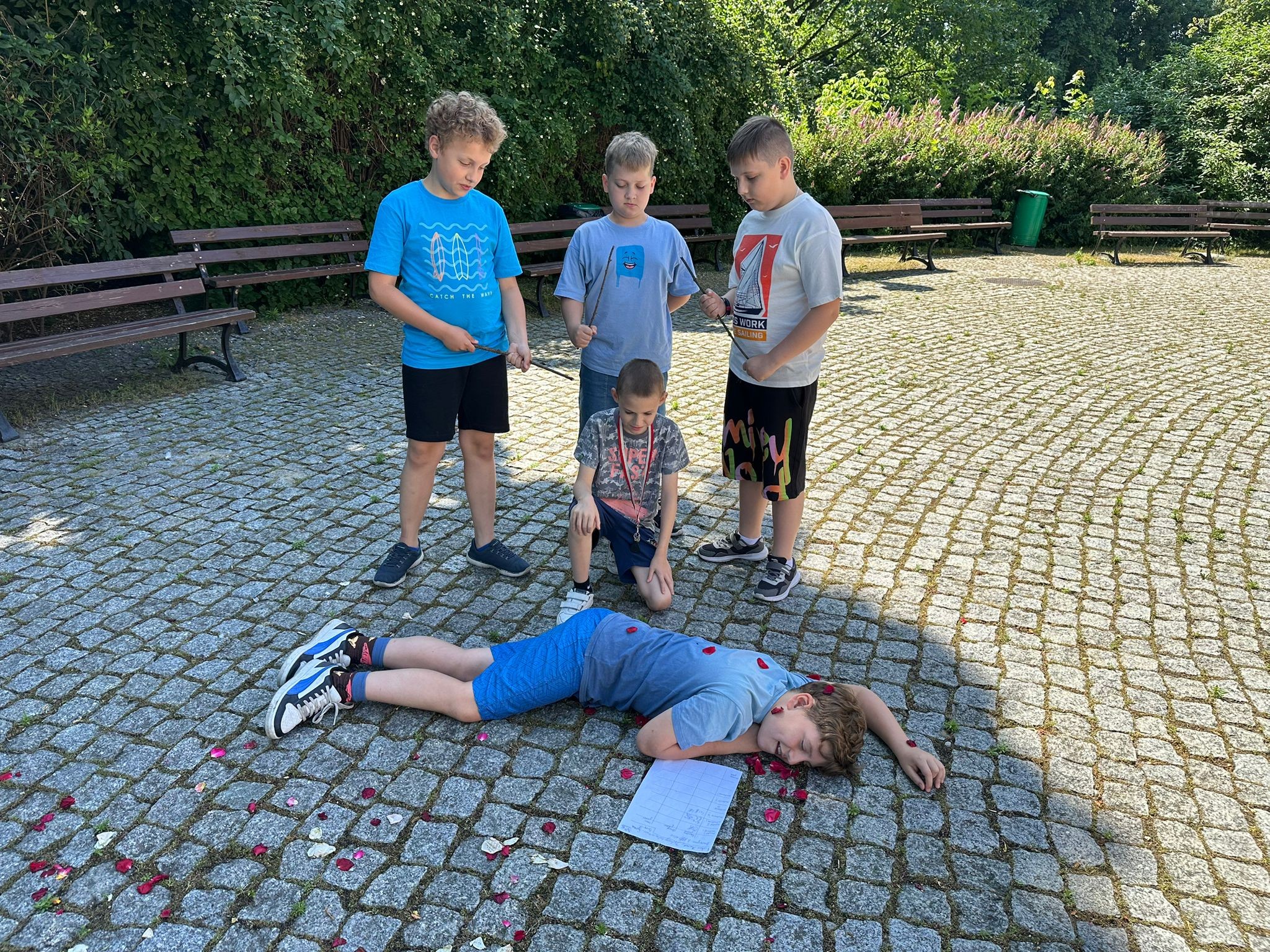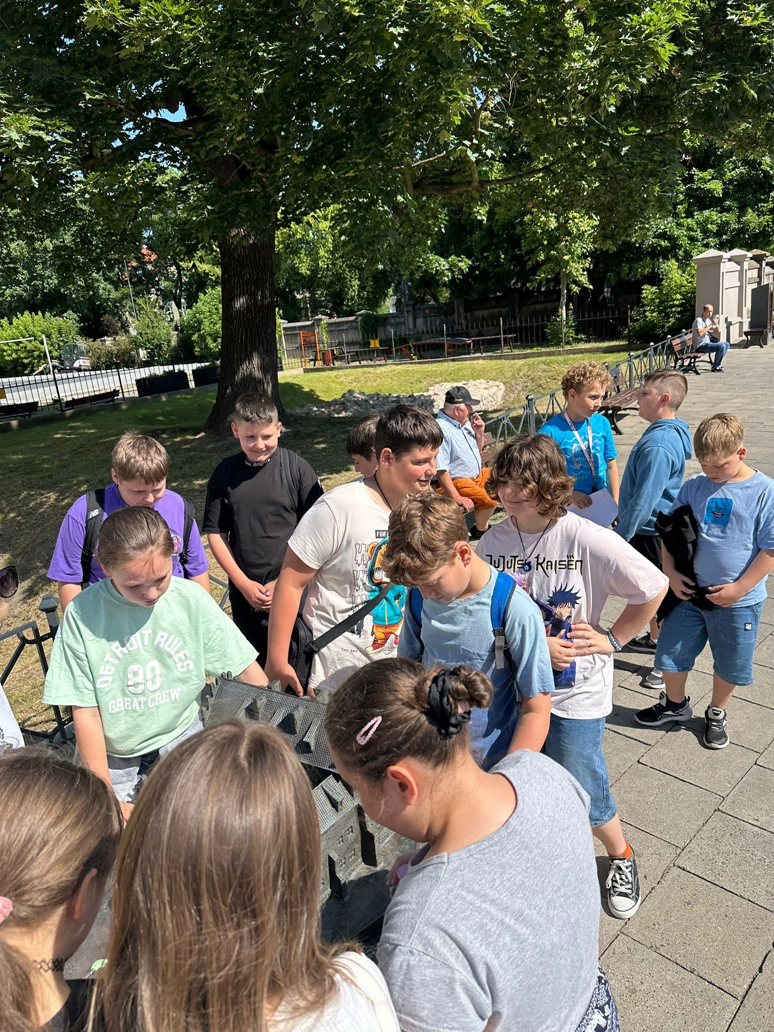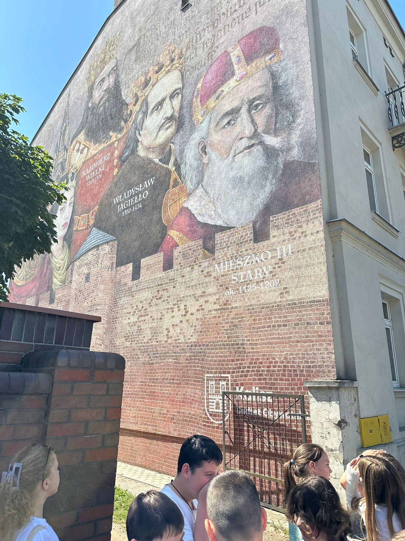 W przeddzień zakończenia roku szkolnego, 26 czerwca grupa uczniów z klas: 4a, 4b i 6a wzięła udział w szkolnej grze miejskiej pn. ,,Królewskim szlakiem po Kaliszu”. Jej uczestnicy, wędrując po dzielnicy Śródmieście, odszukiwali ślady nawiązujące do królewskiej historii naszego miasta. Oglądali średniowieczne pozostałości murów obronnych, ruiny zamku, ,,królewski” mural, Basztę Dorotkę. Miło i aktywnie spędzali czas, poszerzając swoją wiedzę o grodzie nad Prosną oraz rozwiązując tematyczne zadania, które nieraz wymagały wykazania się kreatywnością, pomysłowością, dobrą pamięcią oraz wyobraźnią, a także umiejętnością uważnego słuchania i współdziałania. Gra miejska stanowiła część projektu, który jest realizowany w SP3 z okazji ustanowienia roku 2025 w Kaliszu – Rokiem Miasta Królewskiego. Niedawno odbył się także szkolny konkurs na rysunek przedstawiający zabytek Kalisza z czasów średniowiecza. I miejsce zajęła Weronika Kuc z 4a, drugie i trzecie miejsce zajęły dziewczynki z 5a, kolejno Julia Kurzawa i Julia Plucińska. Dziękujemy wszystkim uczniom za zaangażowanie się w zaproponowane działania.