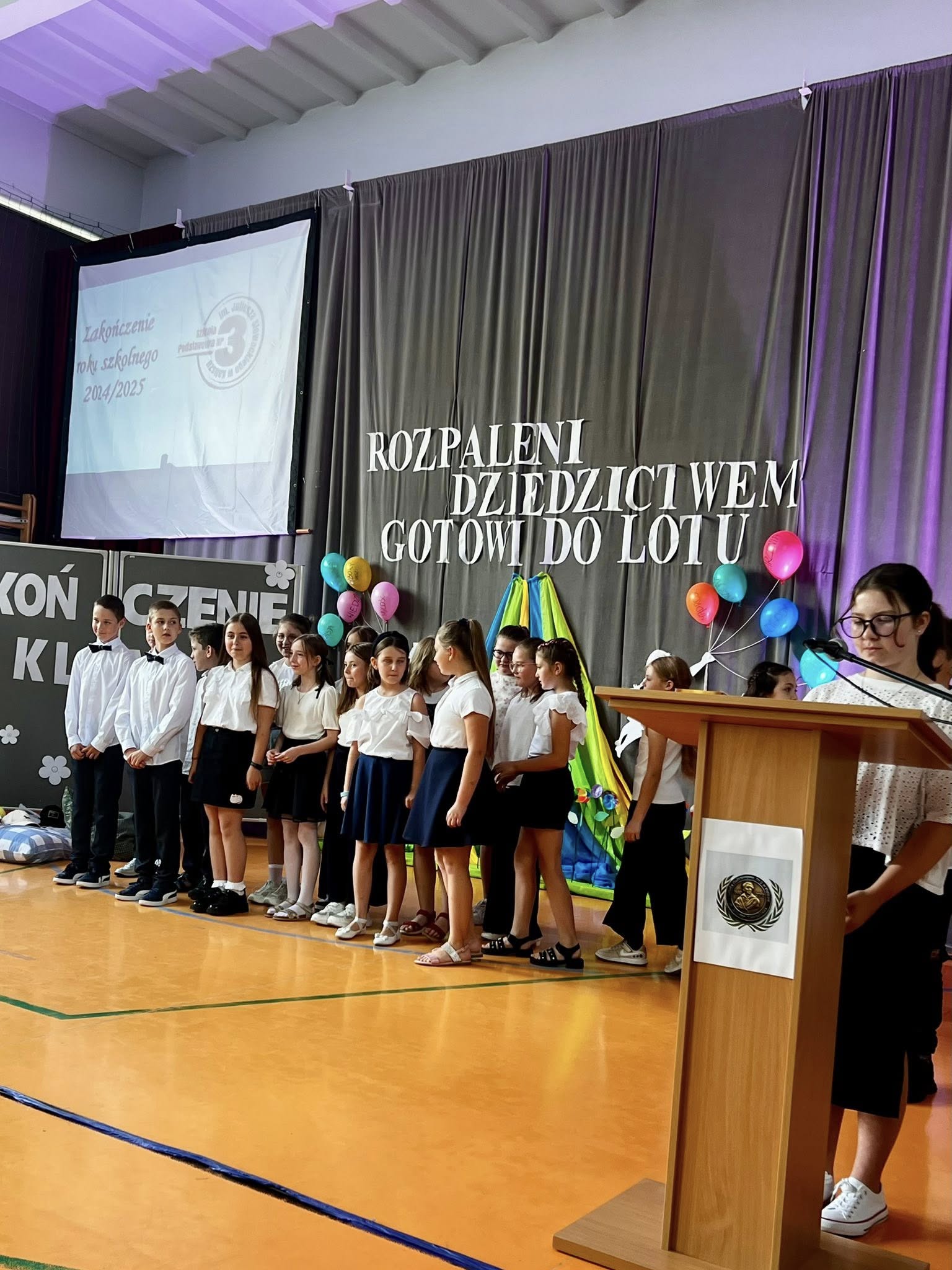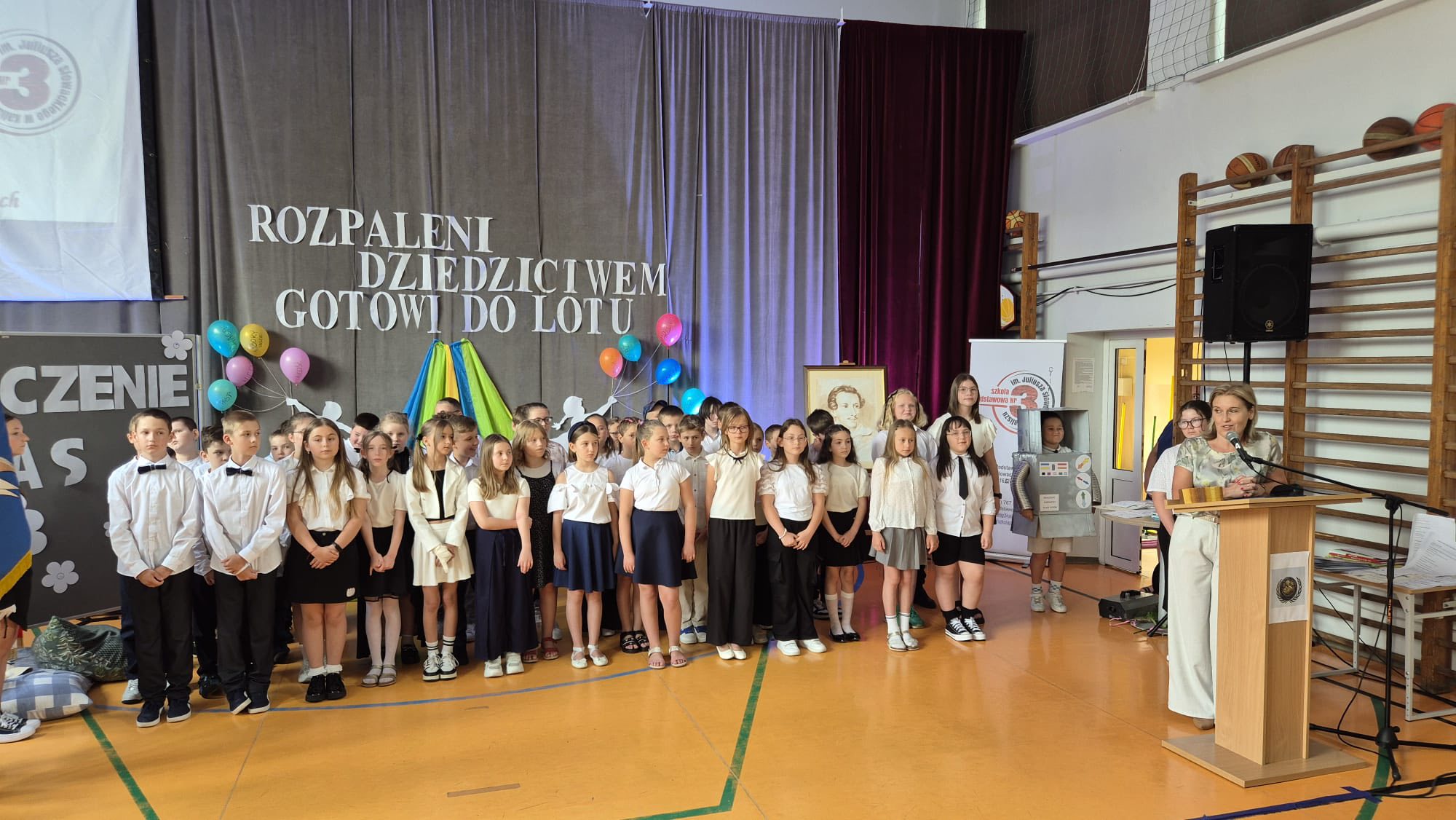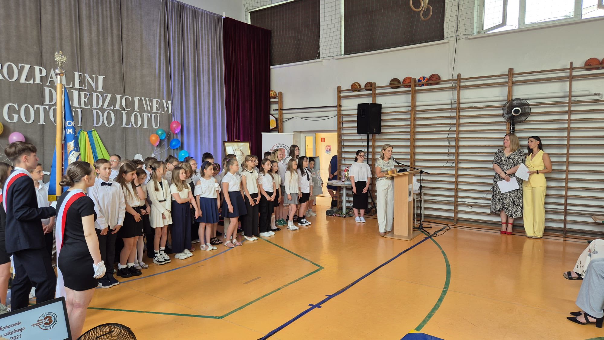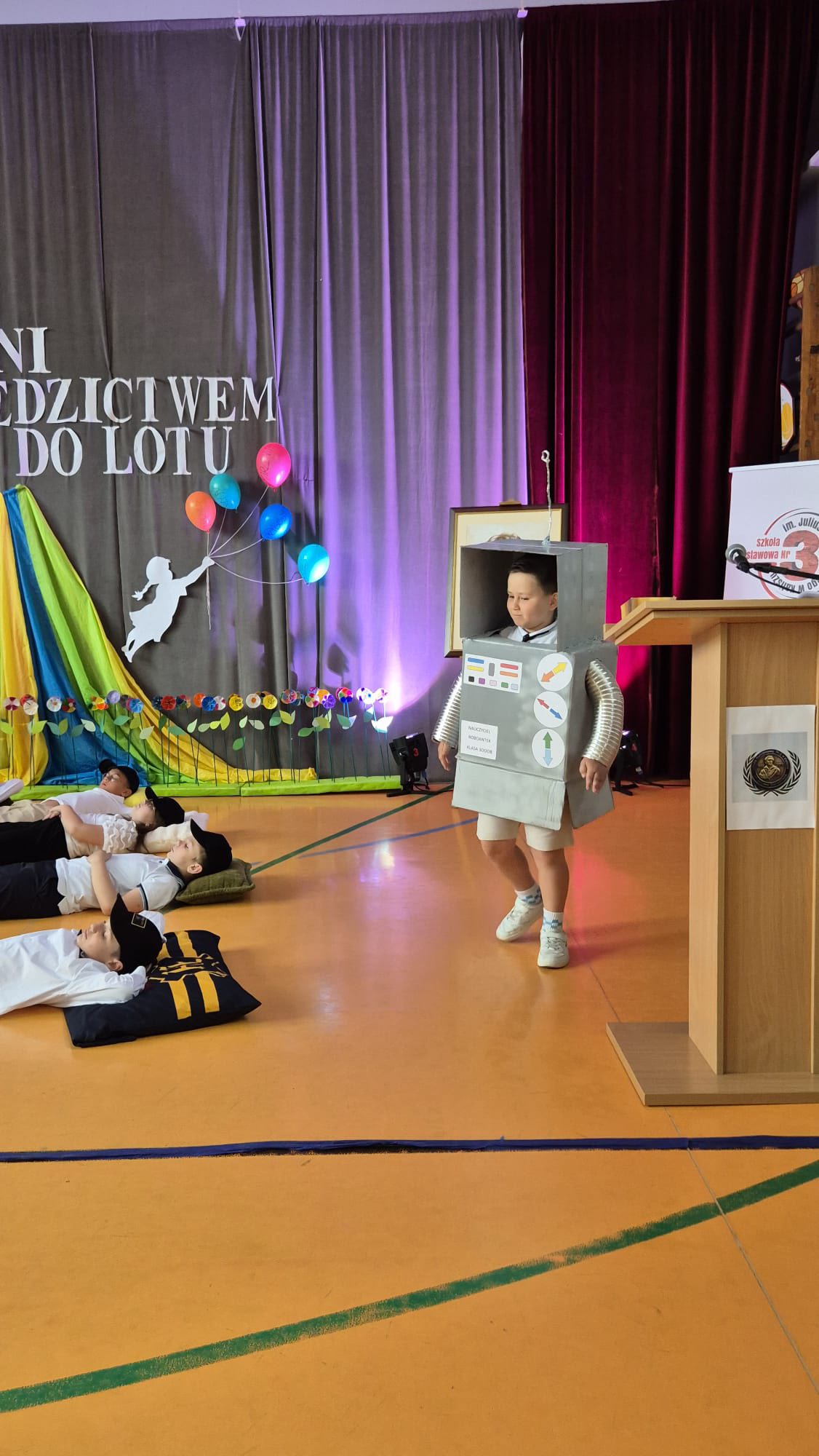 Dzisiejsze pożegnanie trzecioklasistów z wychowawczyniami oraz nauczaniem wczesnoszkolnym dostarczyło zarówno dzieciom, jak i ich rodzicom wielu wzruszeń. Podczas przedstawienia uczniowie przenieśli się do szkoły przyszłości, w której uczyły roboty i aplikacje, ale bardzo szybko chcieli stamtąd wrócić do swoich pań i do książek, uznając, że obecne metody nauczania są dla nich bardziej odpowiednie. Tymczasem jednak udają się na zasłużone wakacje, by po nich pojawić się już na górnych piętrach jako czwartoklasiści.