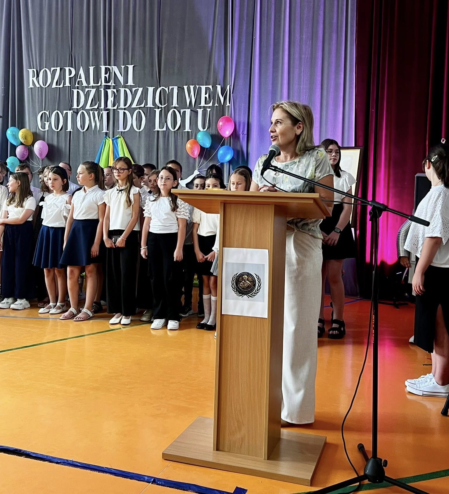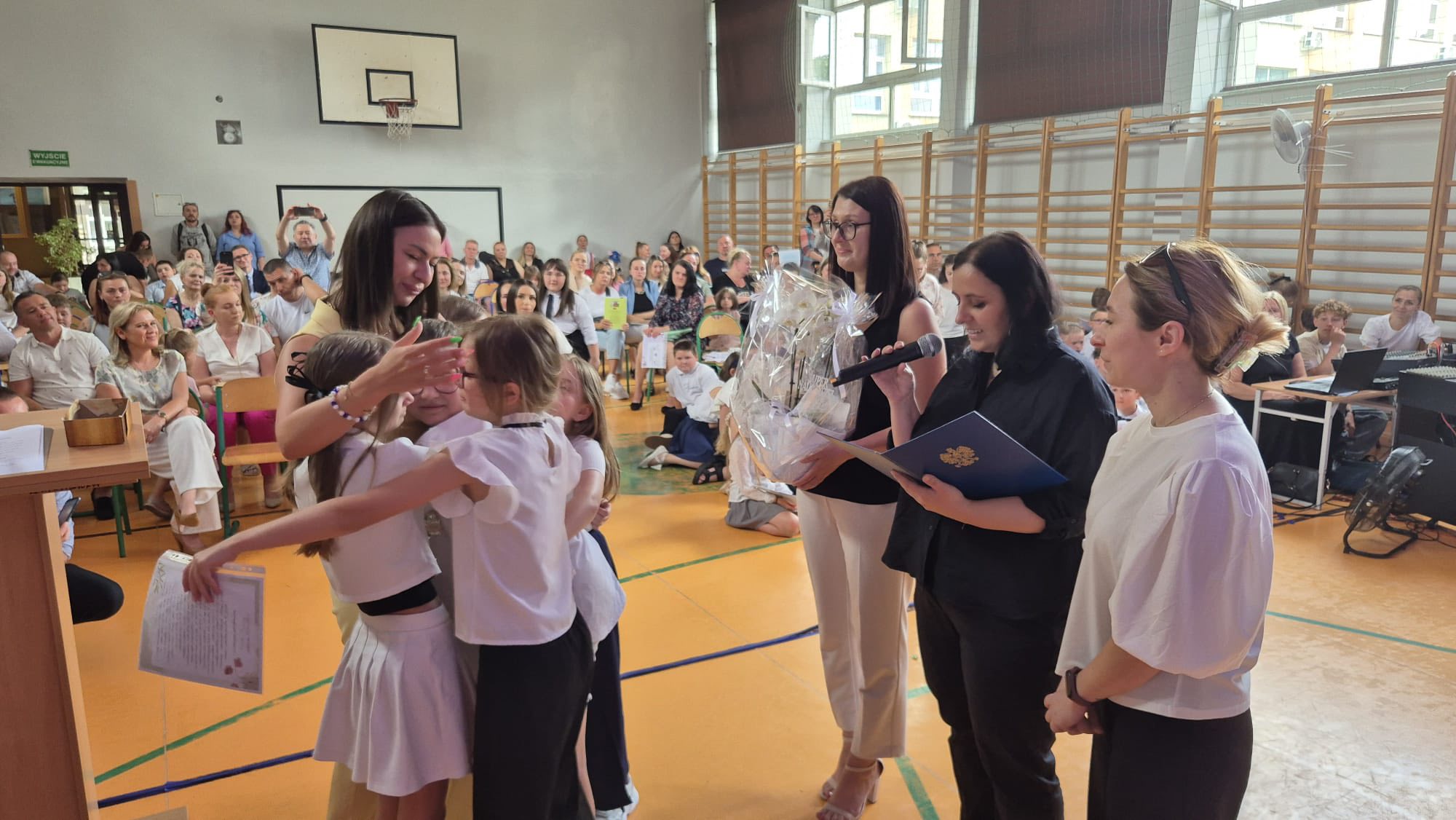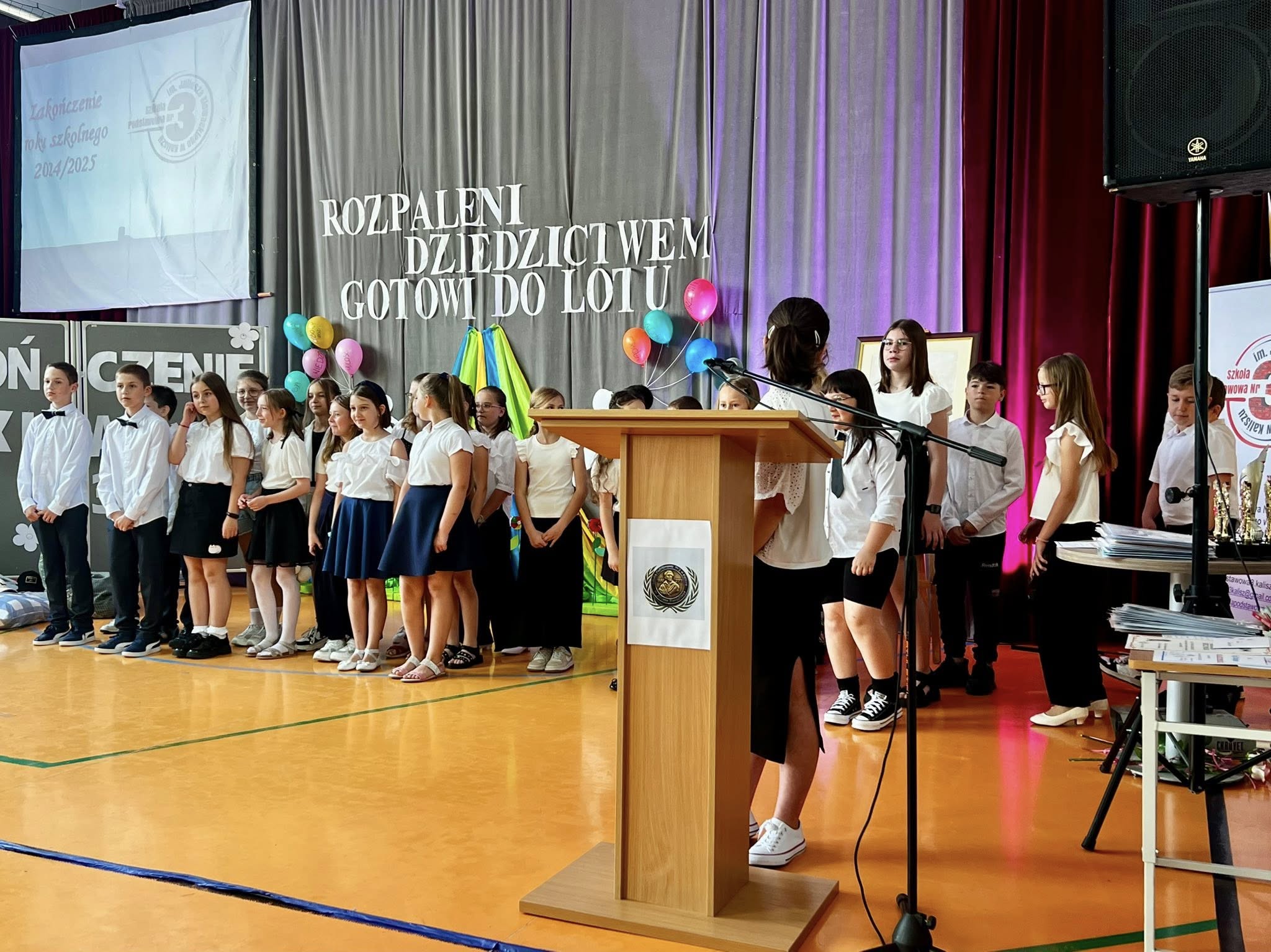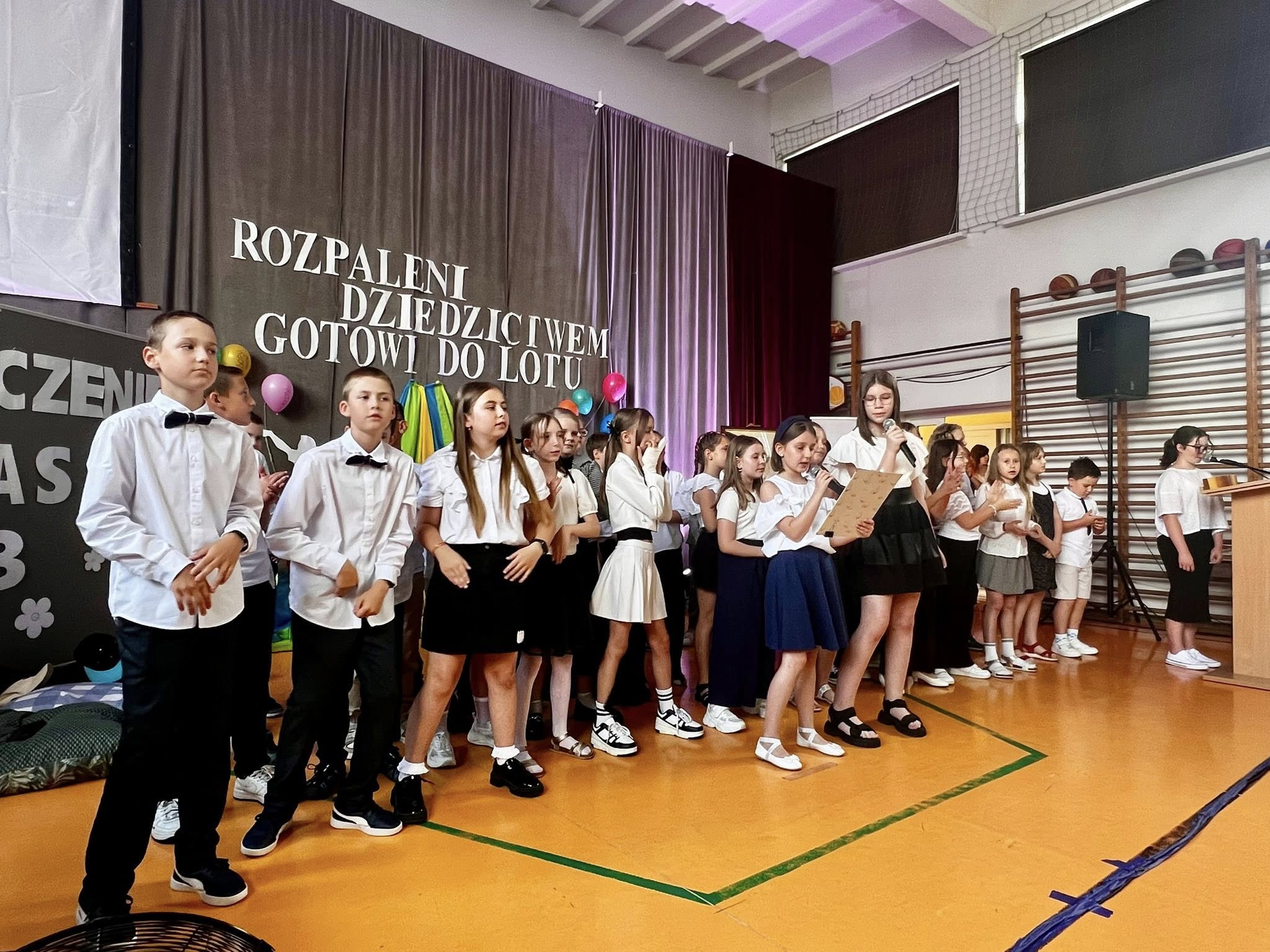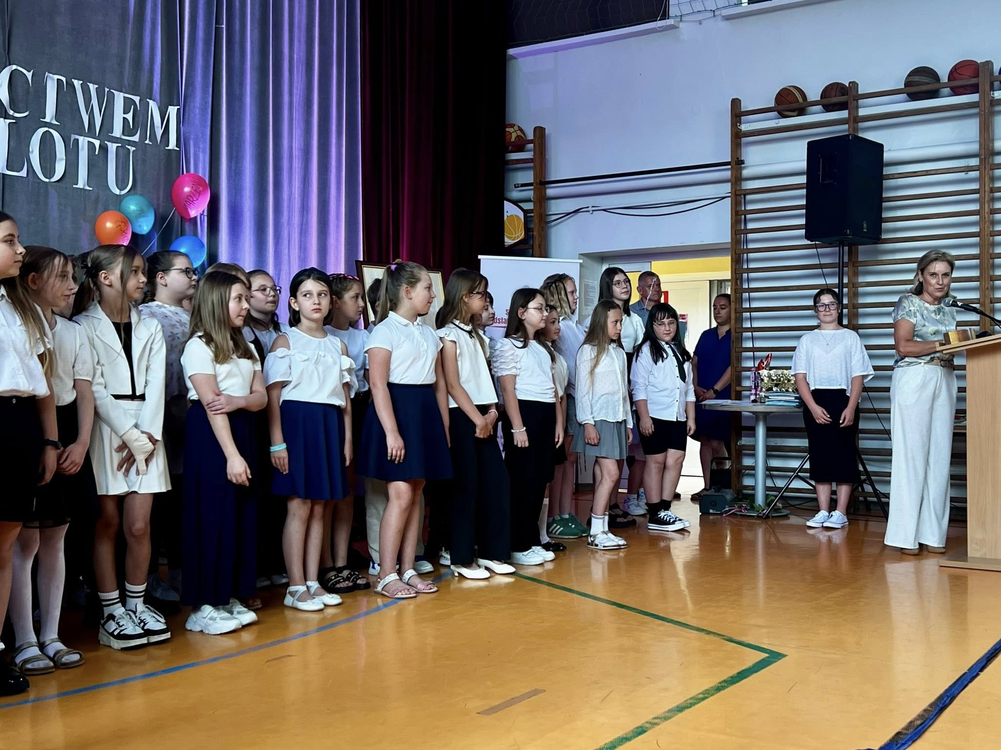 Dzisiejsze pożegnanie trzecioklasistów z wychowawczyniami oraz nauczaniem wczesnoszkolnym dostarczyło zarówno dzieciom, jak i ich rodzicom wielu wzruszeń. Podczas przedstawienia uczniowie przenieśli się do szkoły przyszłości, w której uczyły roboty i aplikacje, ale bardzo szybko chcieli stamtąd wrócić do swoich pań i do książek, uznając, że obecne metody nauczania są dla nich bardziej odpowiednie. Tymczasem jednak udają się na zasłużone wakacje, by po nich pojawić się już na górnych piętrach jako czwartoklasiści.