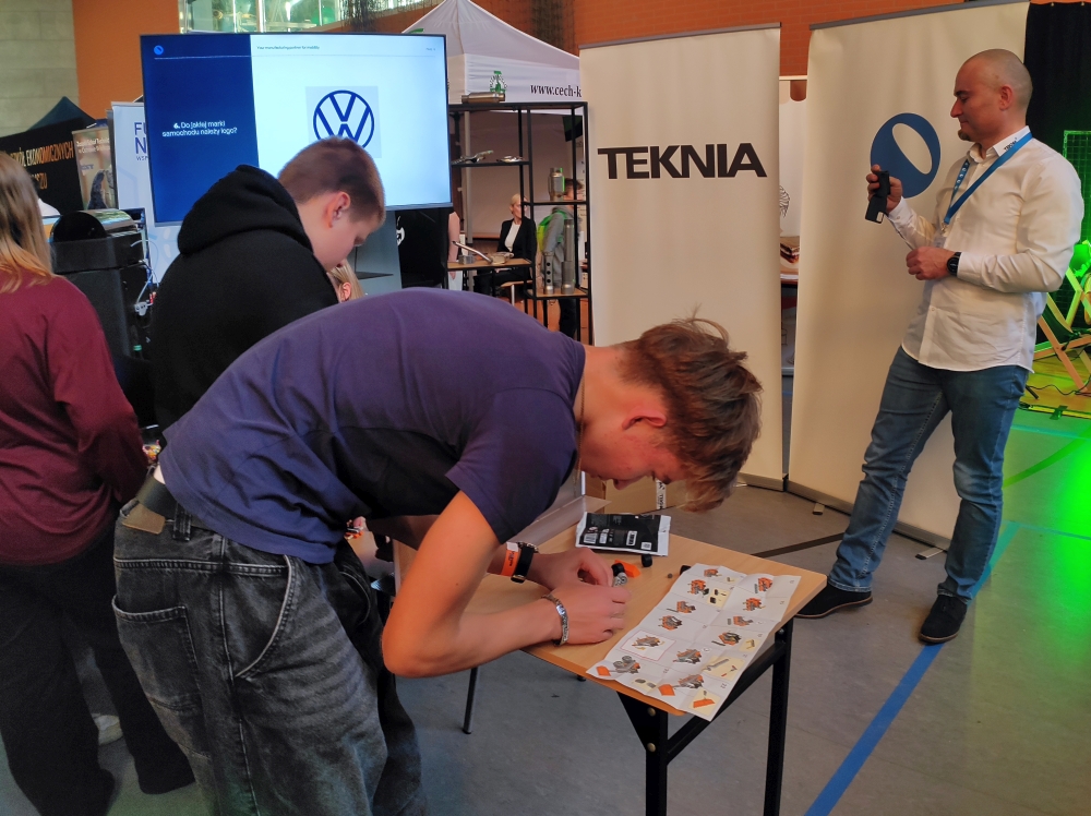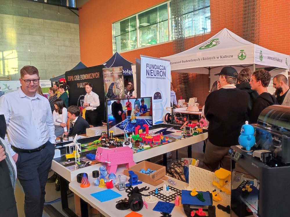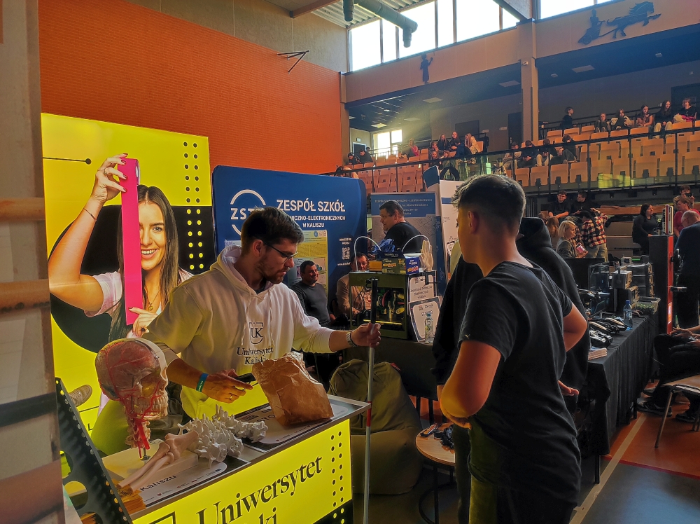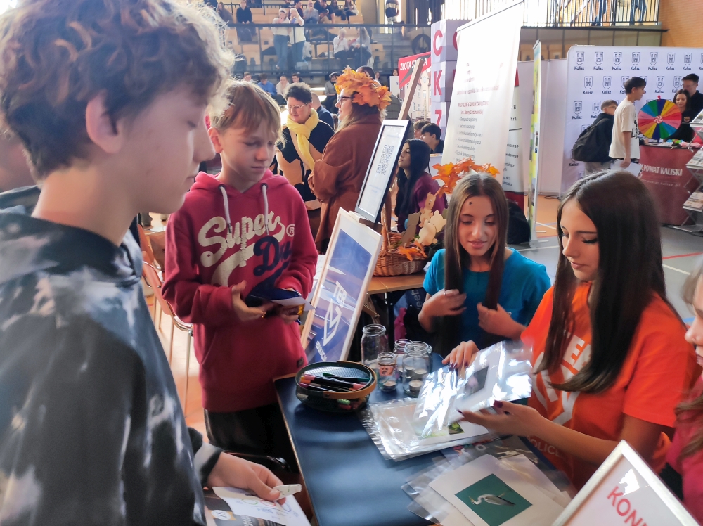 Stoiska instytucji edukacyjnych dostępne były już od godziny 12.00. Z naszej szkoły w tej części imprezy uczestniczyły klasy 7a i 7b, które miały okazję poznać szkoły oferujące kształcenie techniczne i branżowe z Kalisza oraz innych ośrodków. Dla uczniów były to nietypowe, ale niezwykle cenne zajęcia z zakresu doradztwa zawodowego.