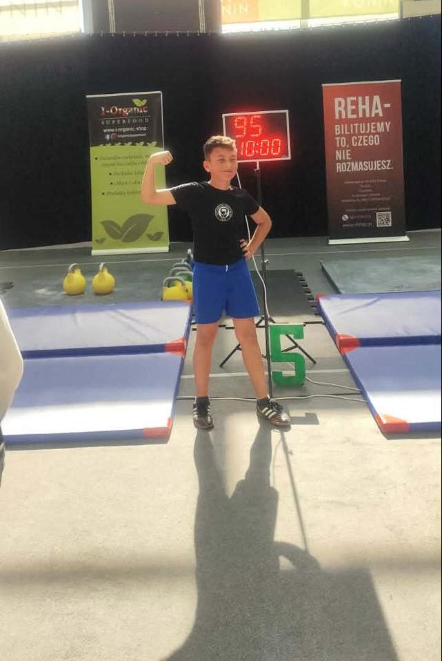 W ciągu 10 minut Szymon wykonał 95 powtórzeń – wielkie brawa za determinację, siłę i sportowego ducha.