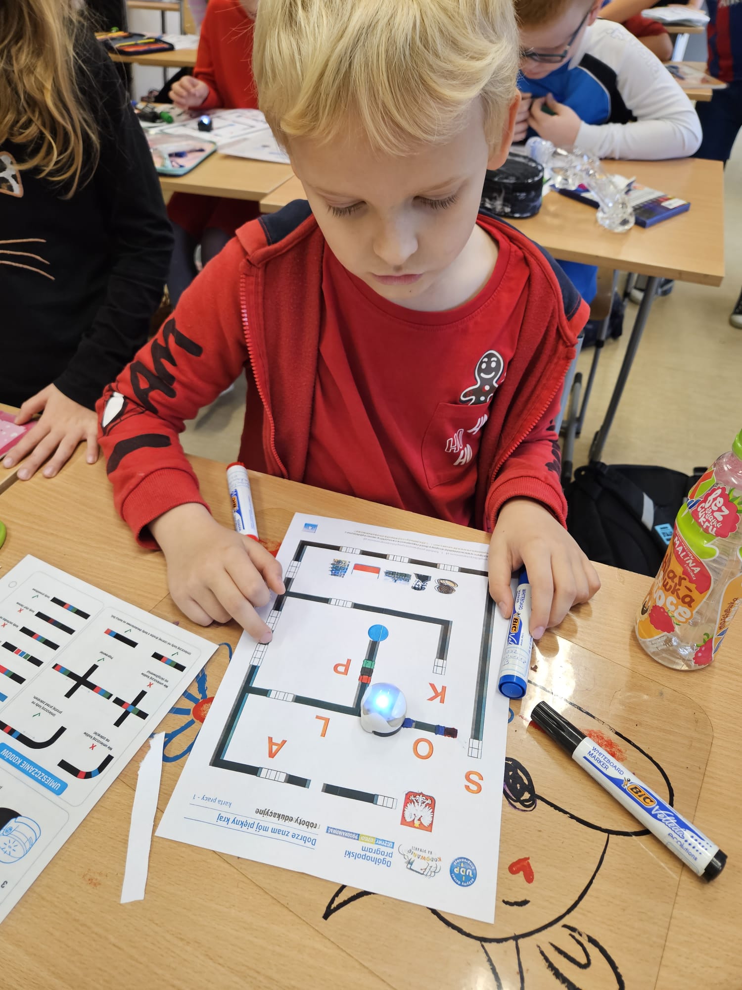 Klasa 3b od początku listopada aktywnie przygotowywała się do obchodów Narodowego Święta Niepodległości. Uczniowie wzbogacali wiedzę na temat historii kraju, poznawali polskich bohaterów, stosując podczas zajęć elementy kodowania. Rozmawiali z nauczycielem o tym, czym jest niepodległość, wypowiadali się na temat patriotyzmu, wymieniali symbole narodowe i wskazywali, jak należy okazywać im szacunek. Obejrzeli tematyczną prezentację multimedialną, wykonali kotyliony, zaśpiewali patriotyczne pieśni, a także zaprogramowali trasy dla ozobotów, używając odpowiednich kodów. Ten bogaty w działania czas niewątpliwie poszerzył wiedzę dzieci z historii Polski oraz rozwinął ich umiejętności kodowania.