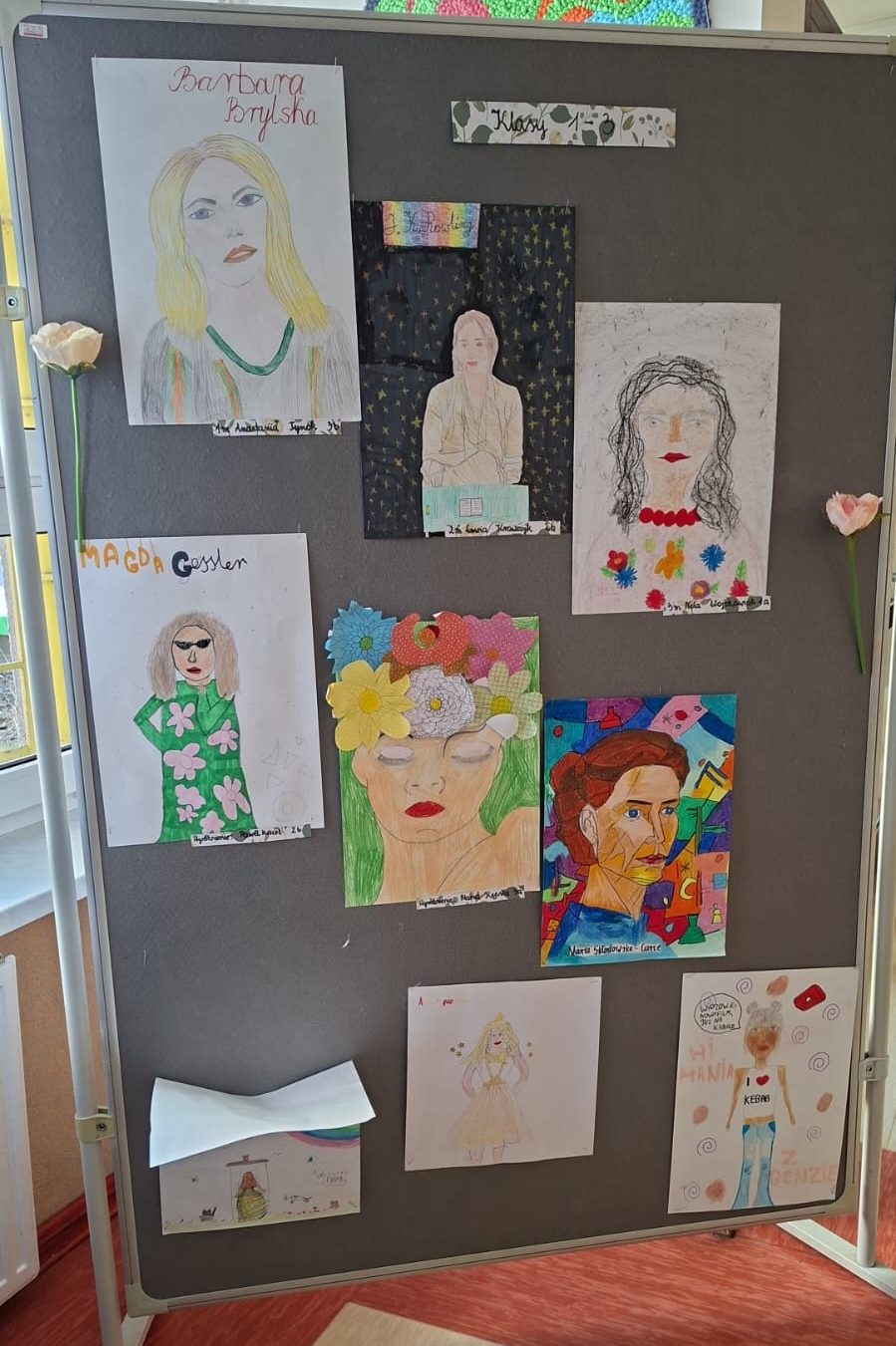 Z okazji Dnia Kobiet uczniowie naszej szkoły wzięli udział w konkursie „Portret Kobiety”. Zadaniem uczestników było namalowanie wizerunku słynnej naukowczyni, piosenkarki, sportsmenki, aktorki lub pisarki. Uczniowie przygotowali wspaniałe prace, które zostały nagrodzone. Społeczność szkolna może teraz podziwiać wszystkie dzieła na specjalnej wystawie.