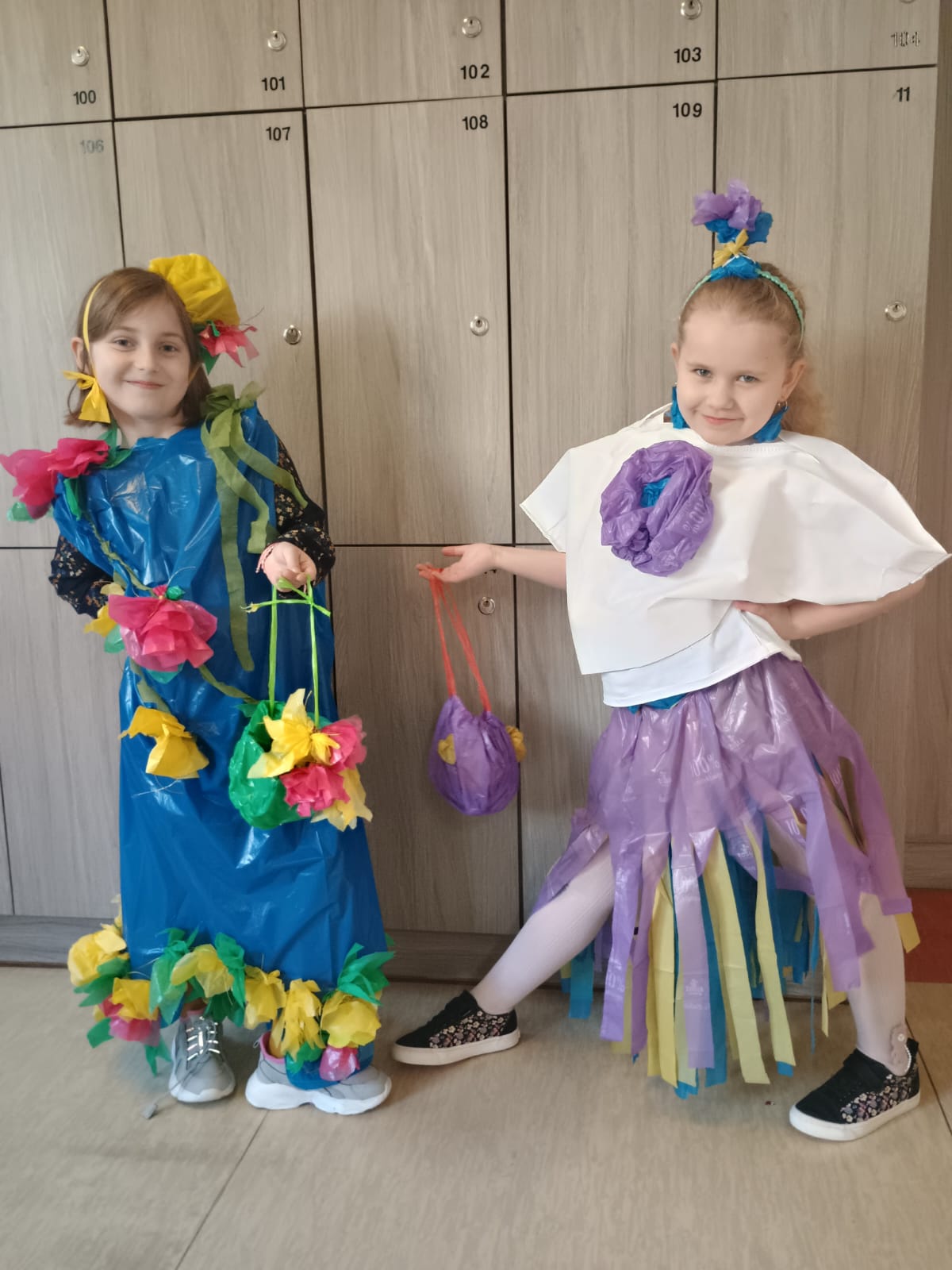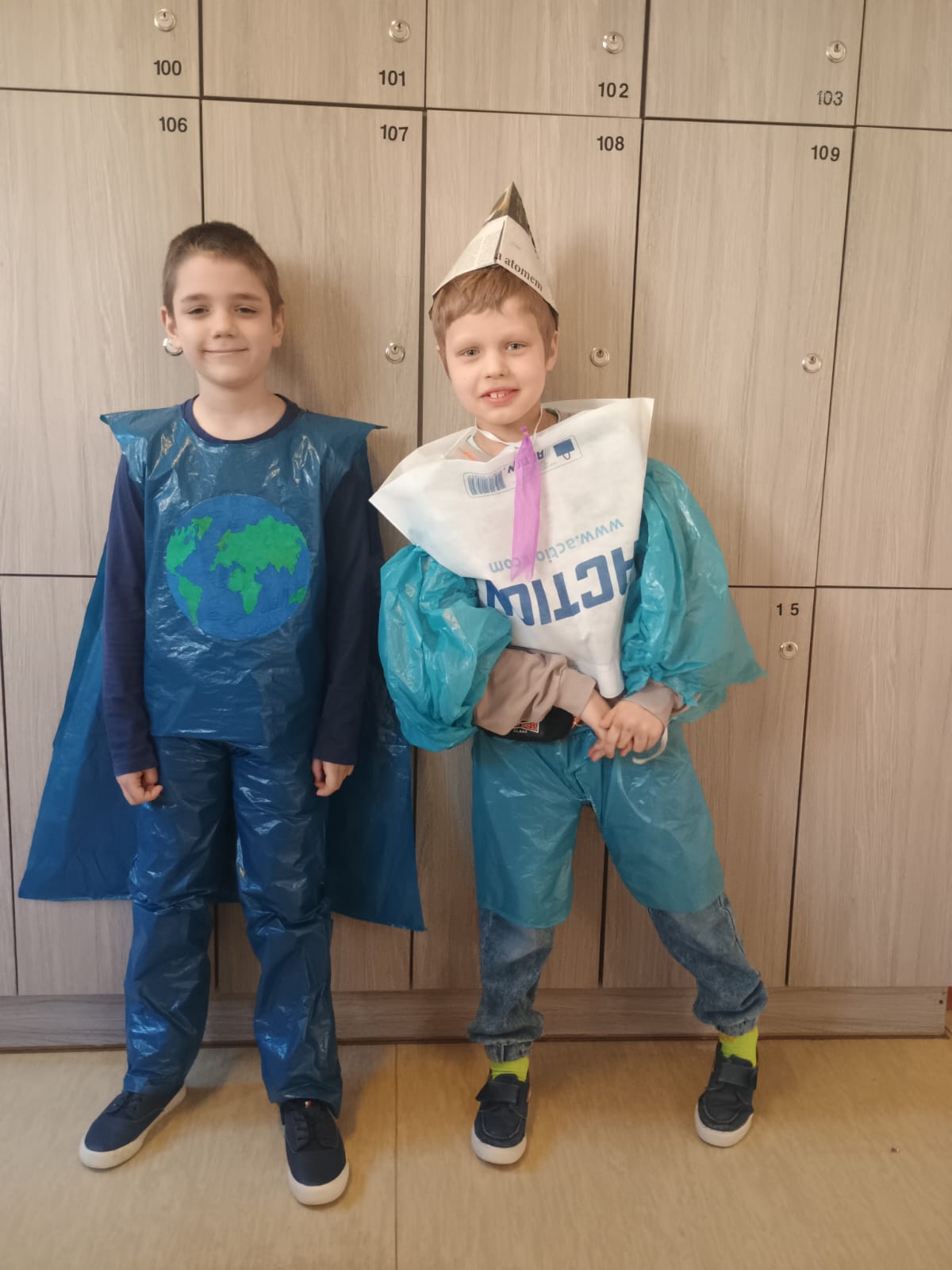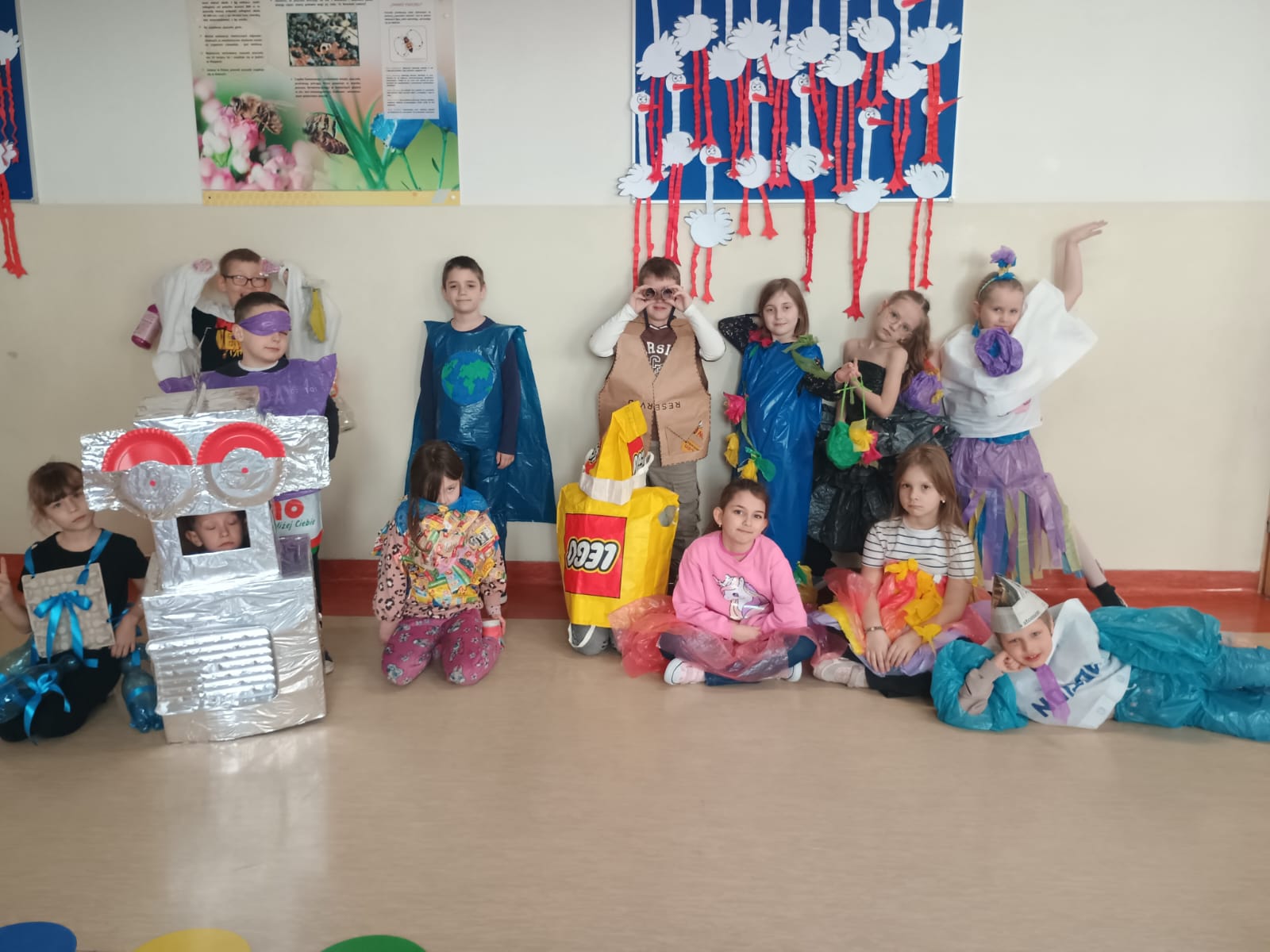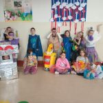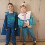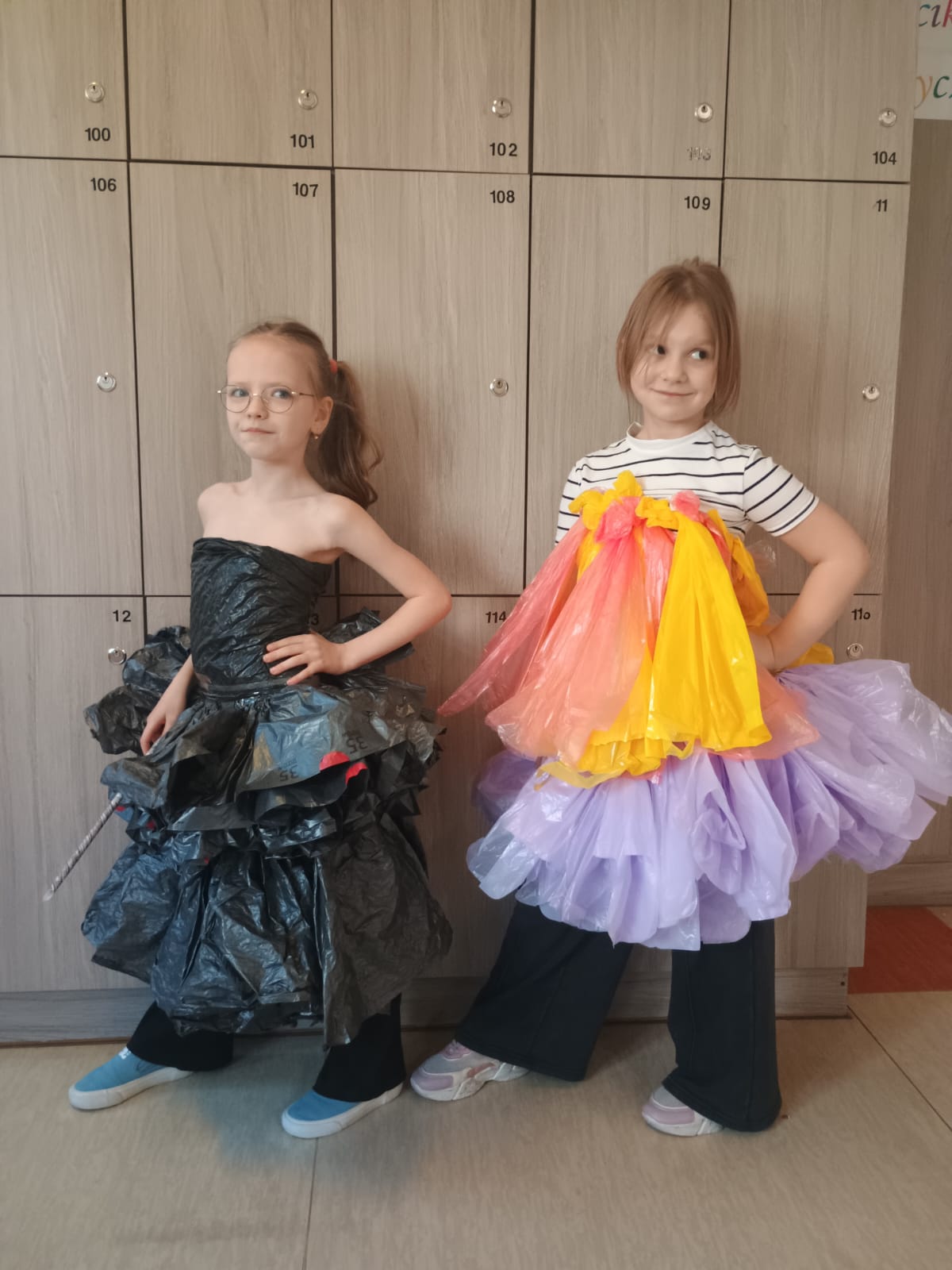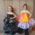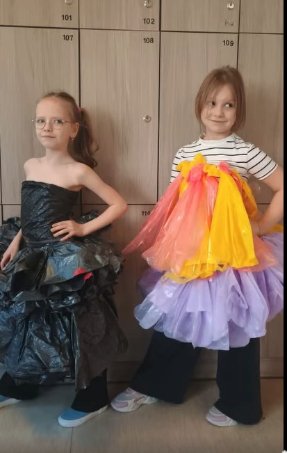 W ramach realizacji projektu „Przygody z Ekobystrzakiem Foldkiem” klasy 1a i 2b podjęły wyjątkowe wyzwanie – przygotowanie ekologicznego pokazu mody. Zadaniem uczniów było stworzenie własnych, niepowtarzalnych projektów ubrań i dodatków z materiałów przeznaczonych do recyklingu. Efekty przerosły wszelkie oczekiwania! Na szkolnym wybiegu pojawiły się bluzki, spódnice, sukienki, płaszcze, obuwie, kapelusze, torby, a nawet miecze. Każda stylizacja była wyjątkowa i wykonana z ogromną pomysłowością oraz dbałością o detale. Młodzi projektanci wykorzystali m.in. worki na śmieci, kartony, stare gazety, papierowe i plastikowe torby, folię bąbelkową, skrawki materiałów, plastikowe butelki, różnego rodzaju opakowania, a nawet wytłaczanki po jajkach i worki do odkurzacza. Z pozoru niepotrzebne rzeczy zyskały drugie życie, zamieniając się w oryginalne i designerskie kreacje. Pokaz był nie tylko świetną zabawą, ale także cenną lekcją ekologii, pokazującą, jak ważna jest segregacja odpadów i ponowne wykorzystywanie materiałów. Uczniowie wykazali się ogromną wyobraźnią, kreatywnością oraz odwagą, prezentując swoje projekty na wybiegu. Serdeczne brawa dla wszystkich.